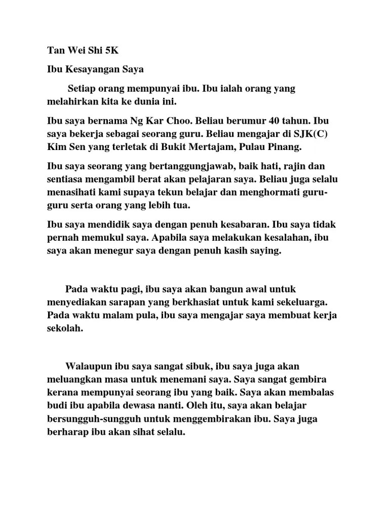 Bahasa Melayu Ibu Saya Karangan Tahun 4 / Ibu Kesayangan Saya Pdf Pdf
